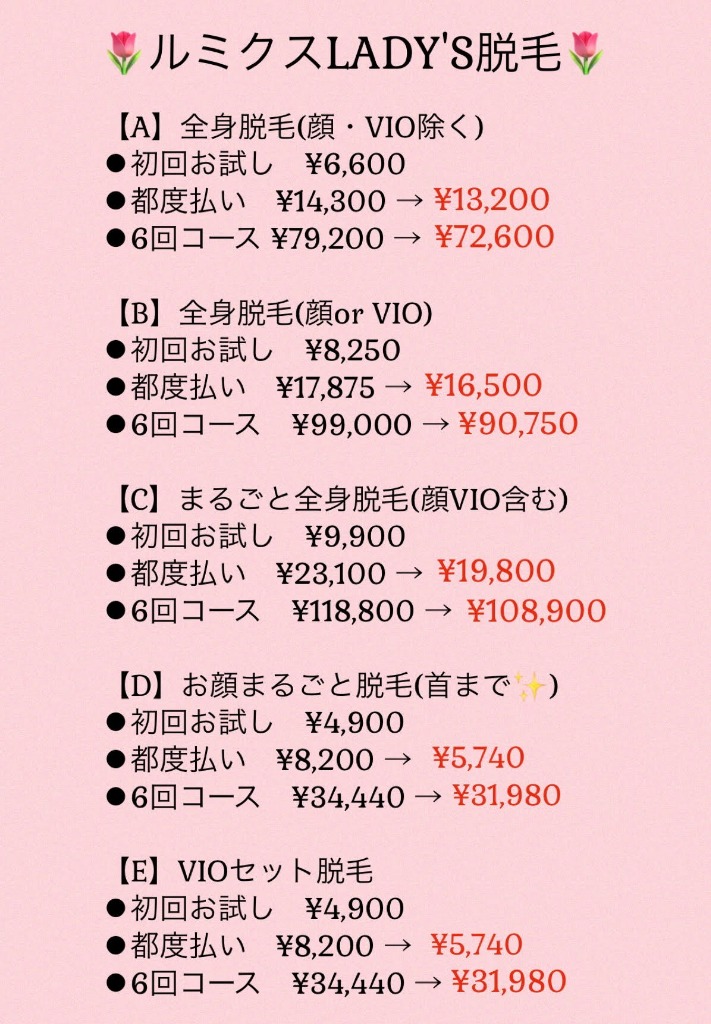 ツルすべ~、産毛までも完全に~という方はご満足いただけるまで~