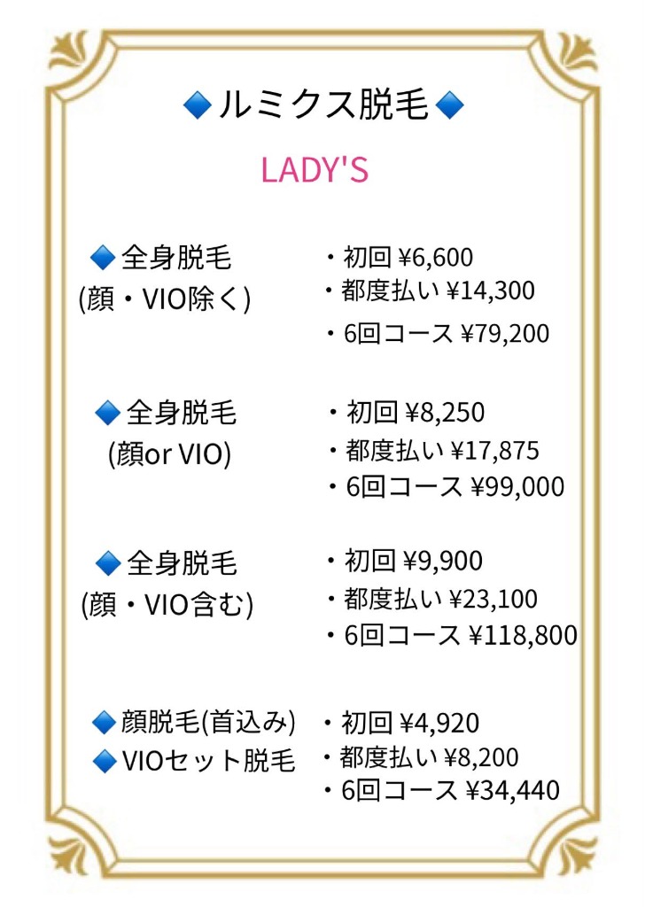 ルミクス脱毛(レディース)6回コースキャンペーンです(^▽^)/