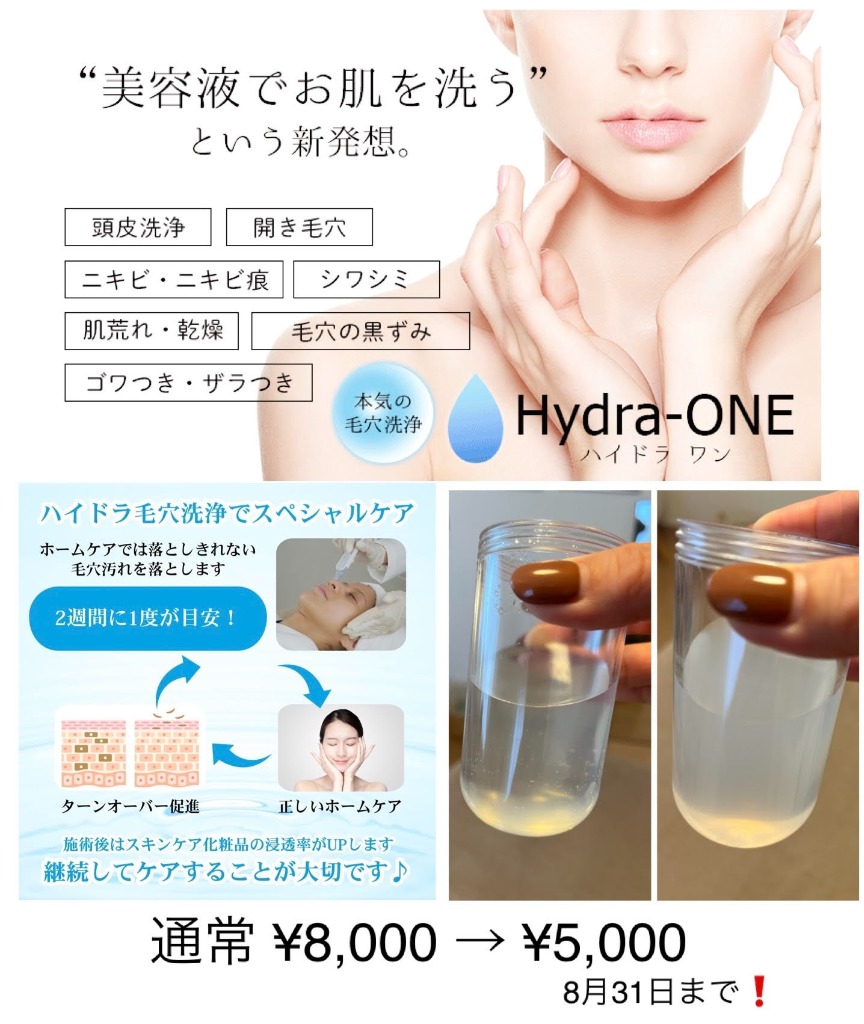 ハイドラワン毛穴洗浄コースは、8月31日まで